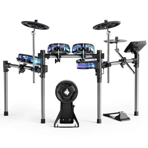 En nyskabende feature er den trådløse kabelføring via stikdåser i stativet, hvilket minimerer kabelrod. Derudover har trommerne og bækkenerne indbyggede LED-lyseffekter, hvor farverne kan tilpasses.