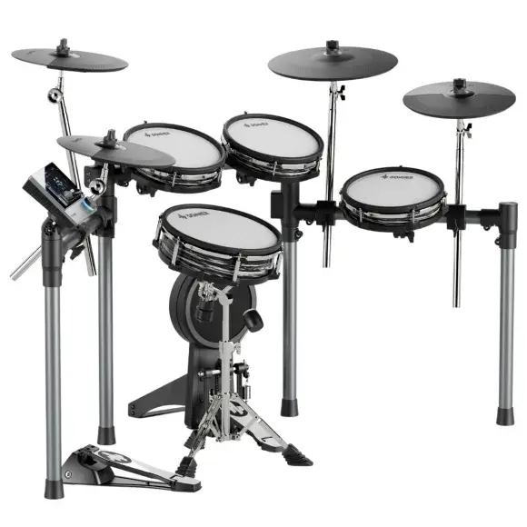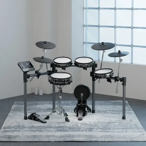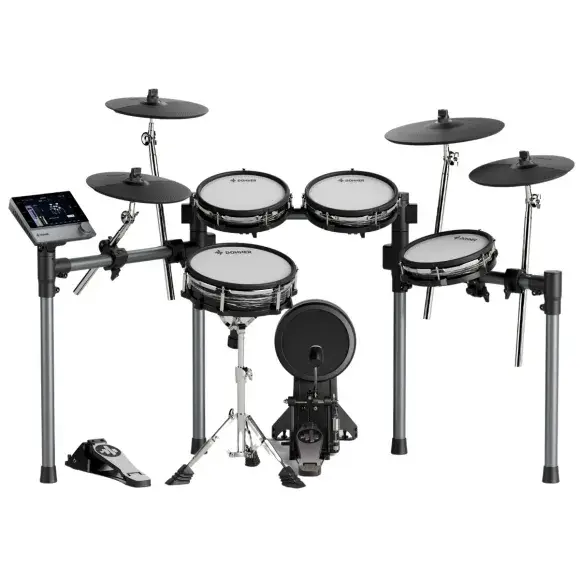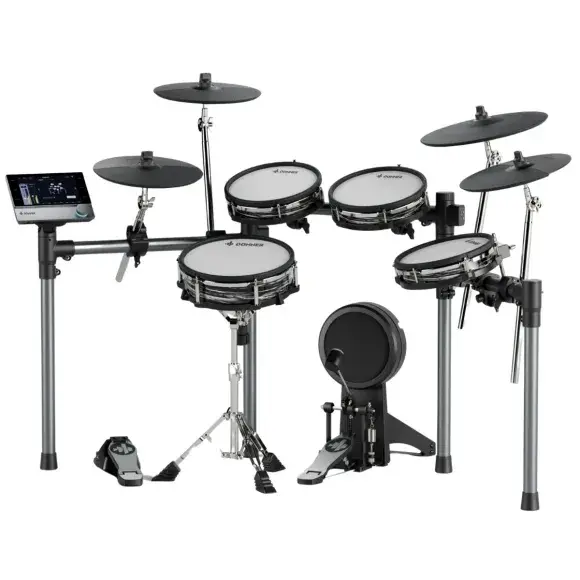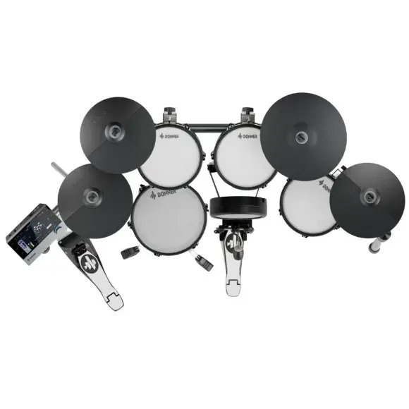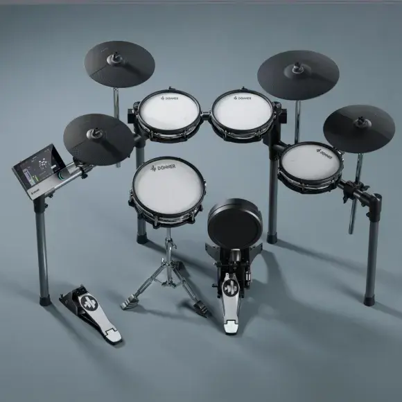 Donner Beat Max er et avanceret elektronisk trommesæt, der kombinerer professionel lydkvalitet med innovative funktioner. Med en 12” dual-zone mesh lilletromme og et 14” triple-zone ride bækken leverer det en autentisk spilleoplevelse. Det intuitive touchscreen-modul gør navigationen let, og det professionelle lydsæt med multi-sample VST-kvalitet sikrer dynamisk lyd. Med fuldt MIDI I/O er det ideelt til både øvning og studiebrug. Beat Max inkluderer desuden en spil-app, der gør læring interaktiv og sjov.