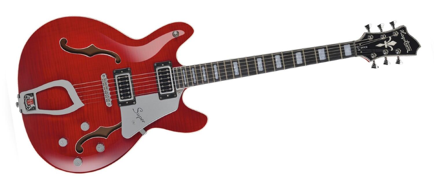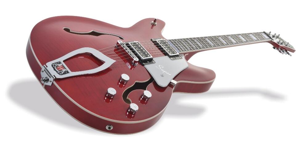 Hagström Super Viking Wild Cherry - Super Viking har en skala på 25,5" og leverer et bedøvende toneangreb. Super lækker Semi-hollowbody guitar
