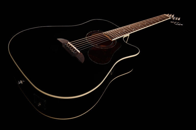 Framus - FD-14 SCE - BK - Flot sort blank Framus western dreadnought guitar med cutaway og Fishman pickup system. Massiv Sitka Gran Top og Tigerstribe Inbenholt gribebræt. Ebony bridge pins, Cleartone strings .012"-.053" (CT 7412)