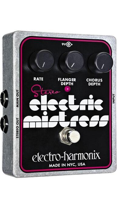 Electro Harmonix - STEREO Electric Mistress - Fed klassisk flanger pedal i stereo. Den har Filter Matrix Mode, hvor du kan vælge endten flange eller freeze. I Freeze mode kan du "fryse" effekten og få nogle virkelig unikke lyde frem. Flanger lyden kommer meget tæt på Jimi Hendrix´s lyd på nummeret "Axis Bold As Love". Inkl. 9V strømforsyning.