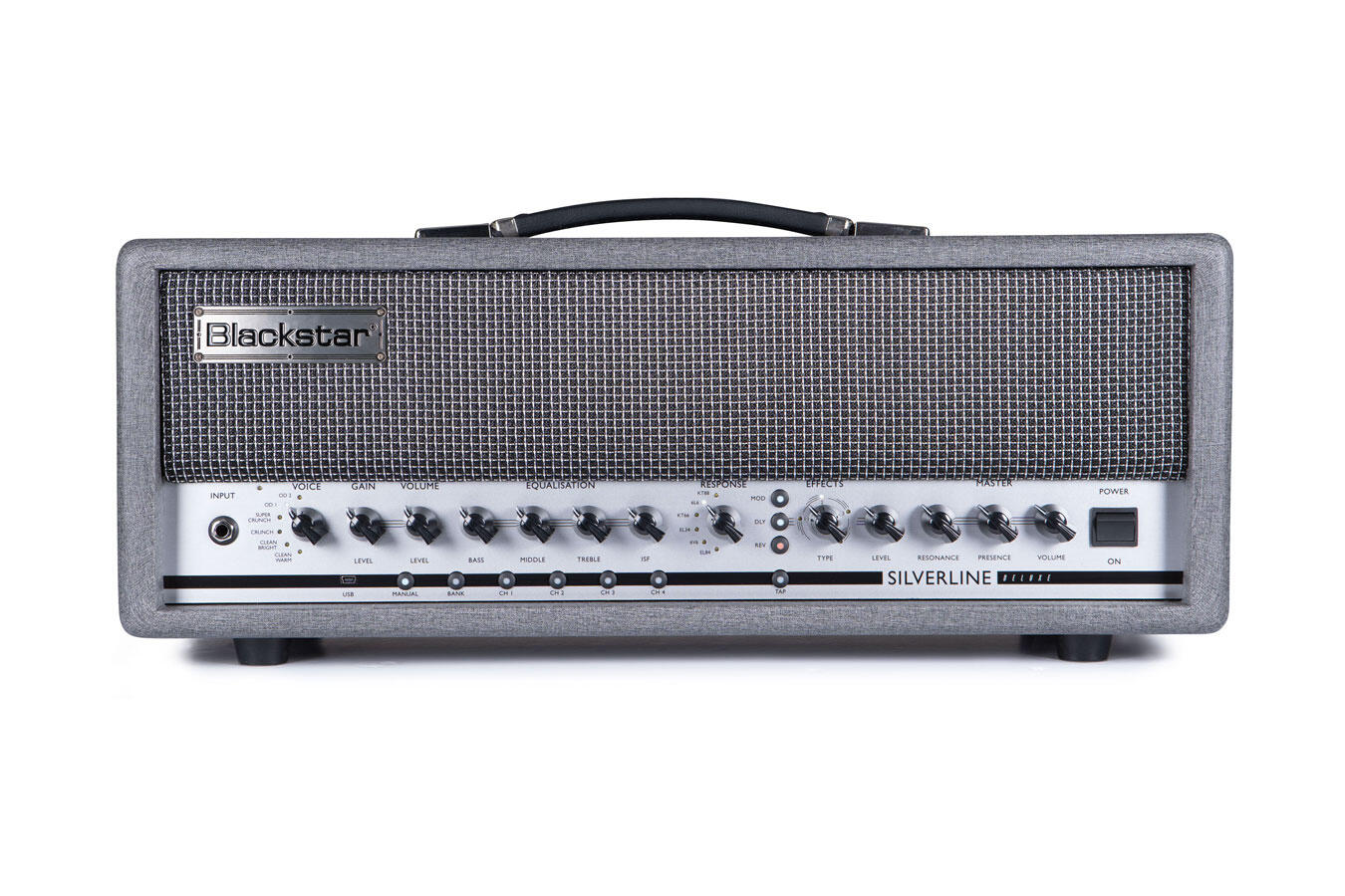BLACKSTAR - SILVERLINE DELUXE HEAD - På Silverline Deluxe Head finder du den samme SHARC-processorkraft bare et niveau højere, en række indstillinger for voice, respons og effekter i studioklasse som combo'erne. Med Deluxe's topforstærker får du mulighed for at kombinere den med dit 4x12" kabinet, rejsevenlig 2x12" eller ethvert andet elektrisk guitar-højttaler-kabinet. Par den bare med dit favorit kabinet, og lad Silverline Deluxe Head håndtere resten. Masser af power og kvalitet for pengene.