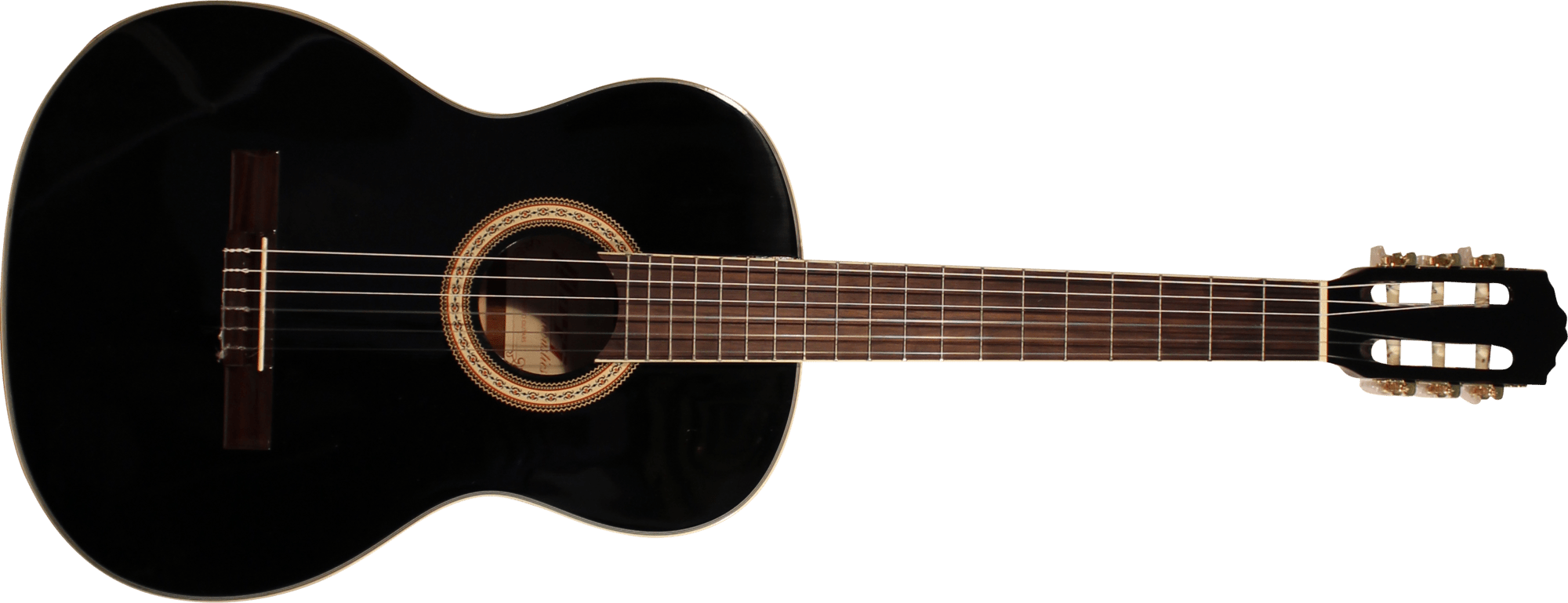Her får du en virkelig fin guitar med højpoleret dæk af gran, sider og bagside af mahogni samt gribebræt af rosentræ. Modellen Moss CG-39BK kan sammenlignes med guitarer i ca. 1500 kroners klassen.