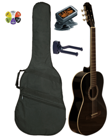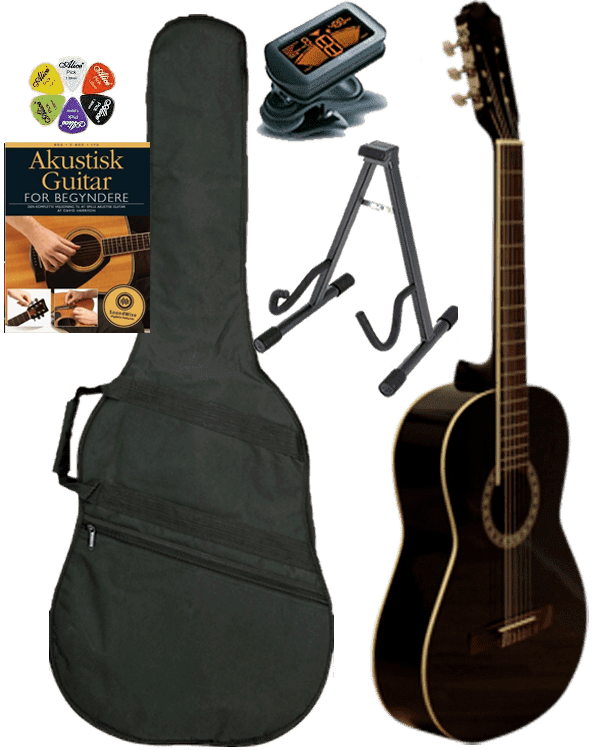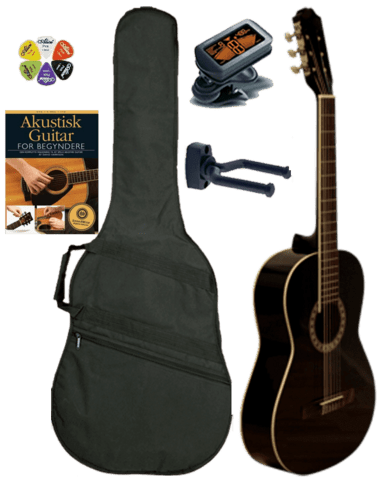Alt hvad man har brug for når du ska igang med at spille guitar er inkluderet i dette pakketilbud.
