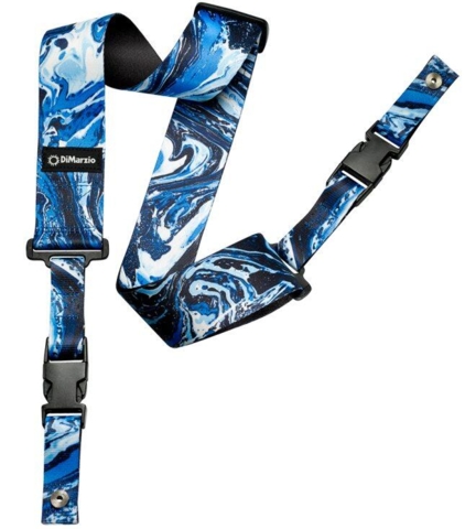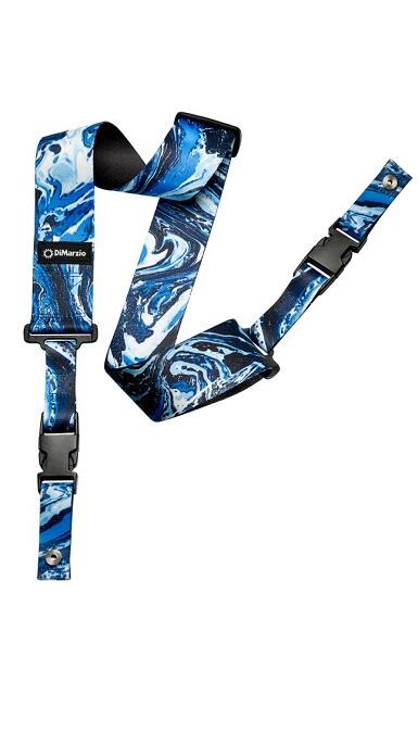DiMarzio - DD2240 ClipLock® Steve Vai Signature - Blue Universe - Fed DiMarzio guitar-rem - Signature fra Steve Vai, der er super nem at klipse på, super holdbarhed, let vægt og let at pleje. Steve Vai har brugt DiMarzios ClipLock-rem i over 20 år og præsenterer nu sin egen designserie. DiMarzio® ClipLock® guitar skulderstropper bruger holdbare plastik klips, der giver dig mulighed for at skifte skulderrem fra en guitar til en anden med et lille tryk med fingerspidserne. Industristandard for styrke, sikkerhed og kvalitet. Monteret på guitaren med to kraftige metalbøsninger inkluderet og ekstra lange skruer, der passer ind i skruehullerne på remknopperne på de fleste guitarer.