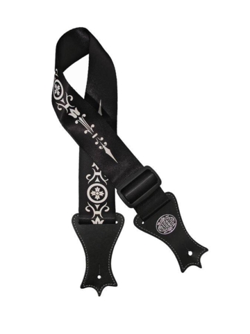 GST-143-BK |Gaucho Icon Series guitar strap - guitar-rem, deluxe sort nylon med kunstlæder snipper, med ornament tryk.