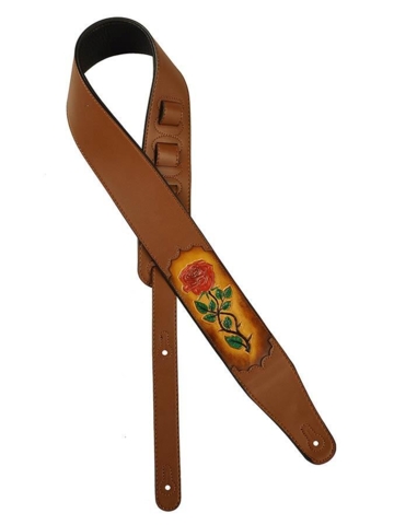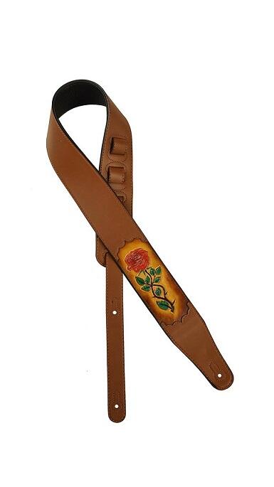 GST-230-BR |Gaucho Stellar Series PU leather guitar strap - Guitar rem i god kvalitet (PU læder) i skindende rose design - brun