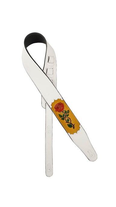GST-230-WH |Gaucho Stellar Series PU leather guitar strap - Guitar rem i god kvalitet (PU læder) i skindende rose design - hvid