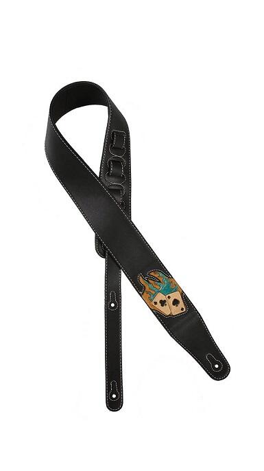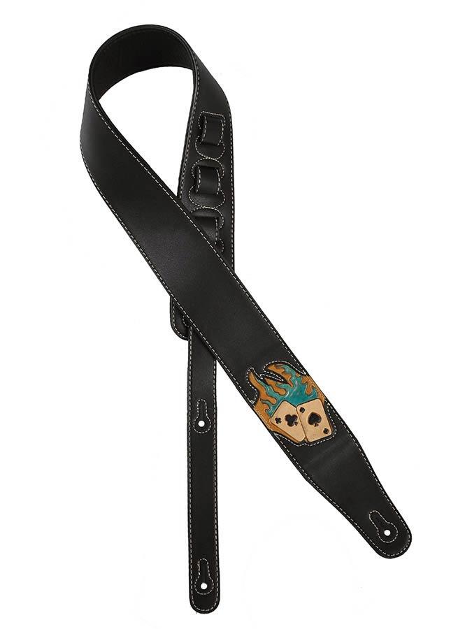 PU leather guitar strap, green flamed aces design, black