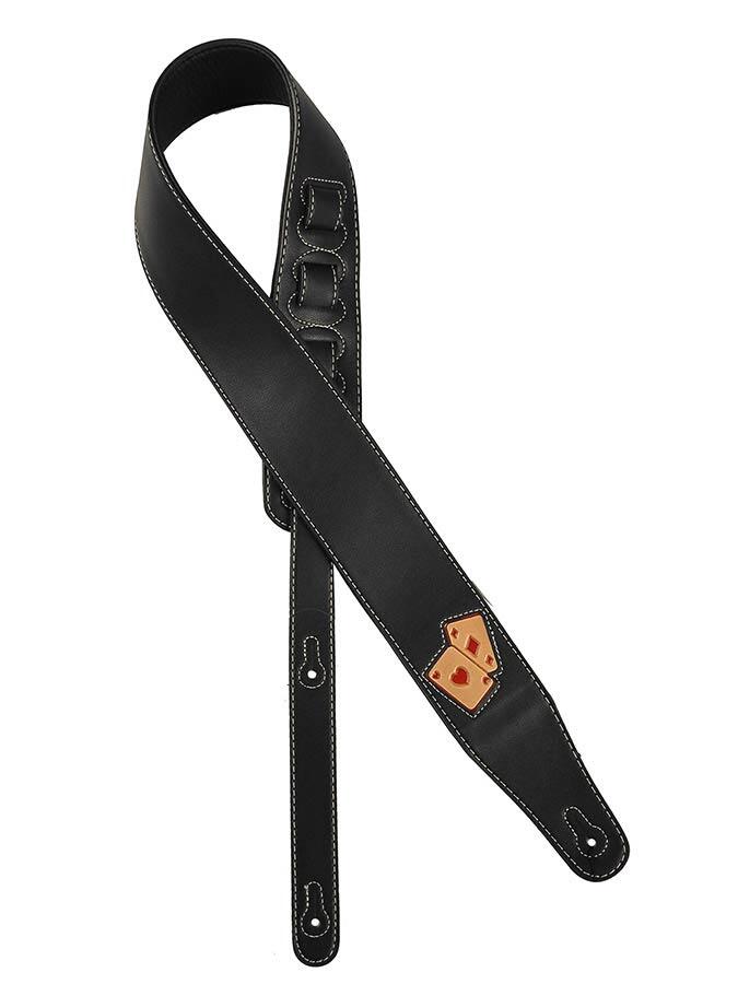 GST-232-RD |Gaucho Stellar Series PU leather guitar strap - Guitar rem i god kvalitet (PU læder) i "røde esser design" - sort