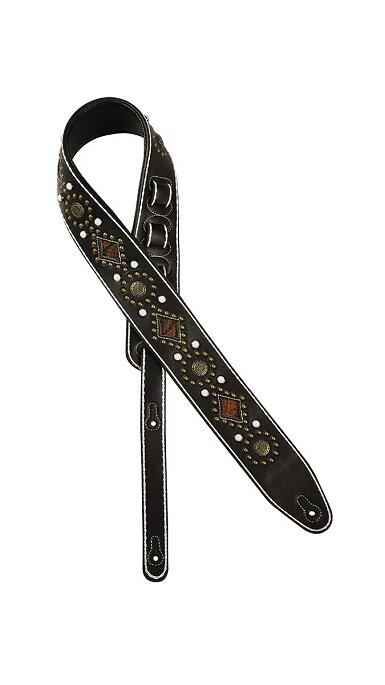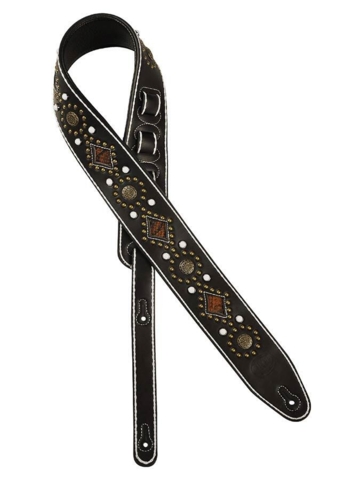 GST-236-WH |Gaucho Stellar Series PU leather guitar strap - Guitar rem i god kvalitet (PU læder) i "metal påsætninger og hvide perler" - Sort / hvid
