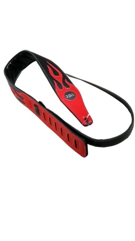 Guitarrem i Læder - SP26 - God kvalitetsrem i læder og med polster. Design: Sort med røde flammer.