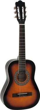 Den er lakeret i en flot sunburst farve og børneguitaren er inkl. en taske.