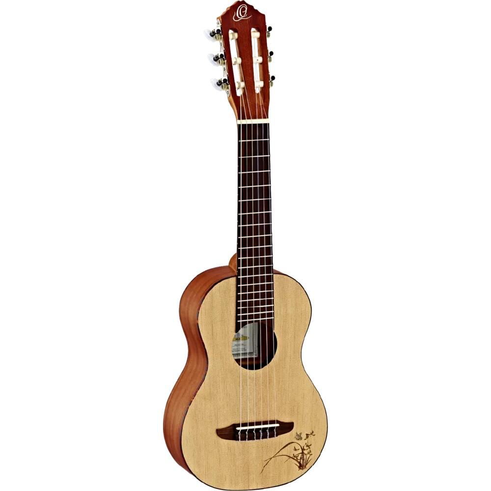 Ortega - Guitarlele - RGL5 - Ortega guitar-ukulele (Guitarlele) der er en hybrid mellem en nylonstrenget 6-strenget klassisk guitar og en tenor ukulele. Det gør den perfekt til en rejseguitar, nem og enkel at spille på - og til alle aldersgrupper.