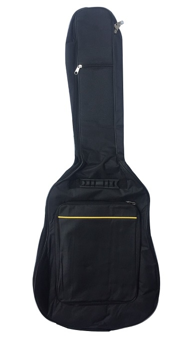 Moss Taske til Western Guitar - God taske fra det Danske mærke Moss. God guitartaske til western guitar med 3 mm polster og forstærkninger på udsatte steder. Der er to lommer - en lille til plektre og diverse og en stor lomme til noder osv. - Den har polstrede remme og gummi forstærkning i bunden og på håndtaget. To polstrede skulderremme, så du nemt og hurtigt kan tage din guitar med dig.