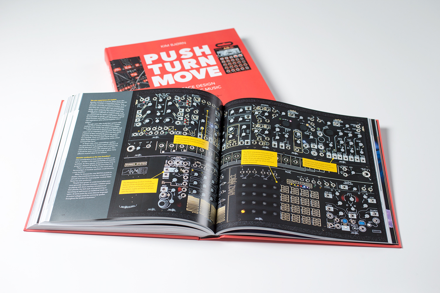 Push Turn Move - Kim Bjørn - Interface design on electronic music. Forord af Jean-Michel Jarre - Den nye bog om elektroniske musikinstrumenter. Mød kunstnere, designere, producenter og deres instrumenter, og se, hvordan de har formet verden af ​​elektronisk musik. Push Turn Move er på 352 sider i fuld farve. Indbundet. Dimensioner: 24,5 x 24,5 cm (9,6 x 9,6 tommer). Trykt i Danmark på 150 g syrefrit kvalitetspapir. PUSH TURN MOVE er skrevet af den danske designer, forfatter, underviser og elektronisk musiker Kim Bjørn og redigeret af Mike Metlay, redaktør i Recording Magazine og Paul Nagle, anmelder hos Sound on Sound Magazine.