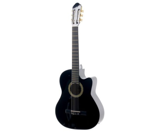 Flot og velspillende halvakustisk guitar i en flot sort farve. Guitaren har indbygget mikrofon og equlizer som frembringer en ren og flot lyd. Guitaren er i fuld størrelse og med cut away i kroppen. Guitaren kan både bruges med og uden forstærker. Fin guitar til en billig pris.