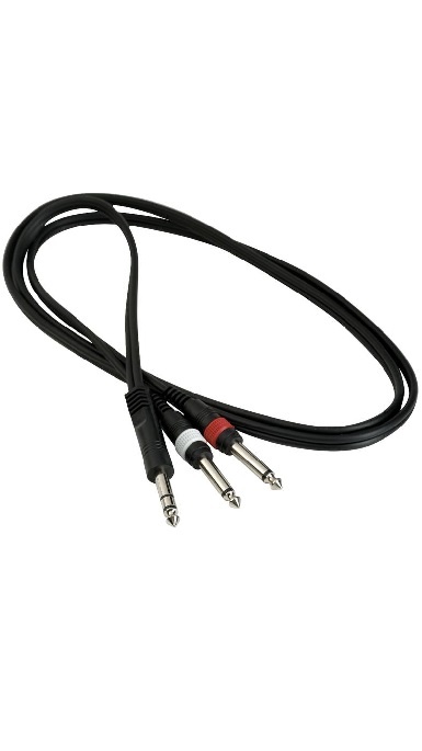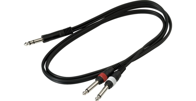 RockCable 6.3mm Stereo til 2x6,3mm mono Jack - 1,5m - Stort stereo jack kabel til 2 x store jacks (6,3mm).