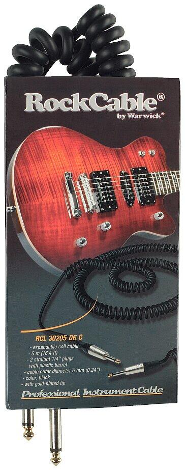 RockCable Instrument Cable - straight TS (6.3 mm / 1/4"), Coiled, 5 m / 16.4 ft - Black