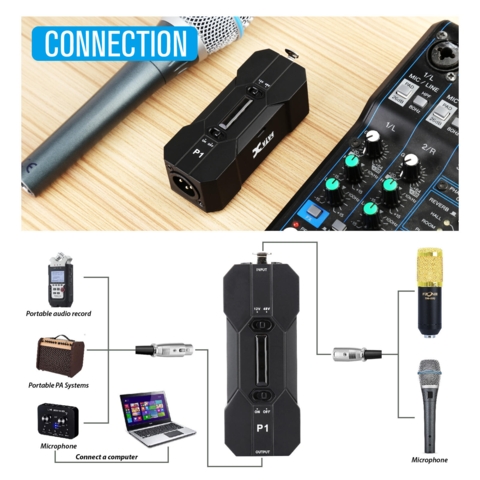 Xvive - P1 Portable Phantom Power Supply - 12/48 V strømforsyning til mikrofoner der kræver phantom power. Den er meget nem at bruge. Den bruger et internt batteri (genopladeligt) og har tilstrækkelig med strøm til at køre mikrofoner med et stort strømbehov. Lille, kompakt og meget robust etui. Lang batterilevetid (14 - 40 timer) og en LED-batteriindikator. Opladningstid: 2,5 - 3 timer.