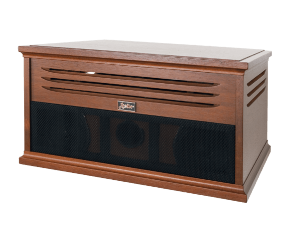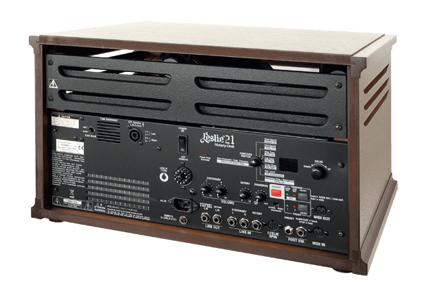 Hammond Leslie 2103 MK2 - 3 kanals kompakt leslie i valnød på 200 Watt RMS. Den nye Leslie 2103 mk2, er ligesom dens forgænger, en komplet fri-stående Leslie-enhed. Denne alsidige multi-leslie med flere kanaler kan tilsluttes ethvert keyboard eller orgel, der kræver en forstærker med en enkelt kanal eller multikanals input. Transportabel, klassisk udseende og med mulighed for udvidelse. Enheden indeholder to stationære kanaler, nemlig venstre og højre, og en roterende kanal. Hver af de stationære kanaler drives af en ny 75W RMS-forstærker, og den roterende kanal drives af en 50W RMS-forstærker. Dette giver denne Leslie et samlet output på 200W RMS (dvs. vedvarende).