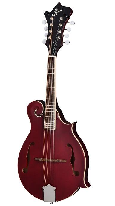 Orville Gibson opfandt den moderne mandolin, og mandoliner har været en del af Epiphones DNA siden dens tidligste dage. Firmaets grundlægger Anastasios Stathopoulos første (og eneste) patent, indleveret i 1909, var for en mandolin. Gibson Master Luthier Lloyd Loar designede den originale F-5 mandolin i begyndelsen af 1920'erne, og dens endelige succes førte til skabelsen af nye musikalske genrer, såsom bluegrass. Nu er Epiphone stolte af at udgive sine seneste mandoliner. Epiphone inspireret af Gibson F-5 Studio mandolin er baseret på den legendariske Loar-designede F-5 og gør en højkvalitets mandolin i F-5 stil mere tilgængelig end nogensinde. Den har en helt massiv trækonstruktion med en massiv ahorn bagside og sider og en massiv sitka gran top. Ahornhalsen er fastgjort til kroppen med en limet ducktail joint og har et laurbær gribebræt med 20 bånd og en Gibson-stil scroll headstock med vintage-stil tunere med pearloid knapper. Dens lyd er afbalanceret, meget tonefuld og resonant, med stor bærekraft, delvist på grund af den tynde satinfinish. En premium gig-taske er også inkluderet.