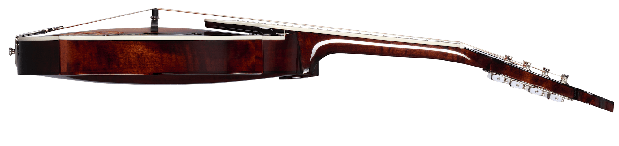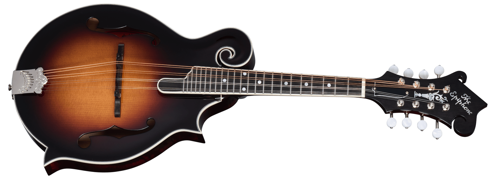 Orville Gibson opfandt den moderne mandolin, og mandoliner har været en del af Epiphones DNA siden dens tidligste dage. Firmaets grundlægger Anastasios Stathopoulos første (og eneste) patent, indleveret i 1909, var for en mandolin. Gibson Master Luthier Lloyd Loar designede den originale F-5 mandolin i begyndelsen af 1920'erne, og dens endelige succes førte endda til skabelsen af nye musikalske genrer, såsom bluegrass. Nu har Epiphone samarbejdet med Gibson Custom Shop om den nye F-5G. Epiphones fineste mandolinmodel til dato, dette exceptionelle Inspired by Gibson Custom Shop-instrument er en trofast genskabelse af den hævdvundne original. Den har helt massiv trækonstruktion med en figursyet ahorn bag og sider og en massiv Sitka Spruce top. Den figurerede ahornhals har et ibenholt gribebræt med en sammensat radius (10" ved møtrikken, 12" for enden af gribebrættet) og en F-stil scroll headstock med vintage-stil tunere med pearloid knapper. Udsmykkede detaljer inkluderer tre-lags topbinding, perlemor "The Epiphone" og flowerpot headstock inlays og den rige Cremona Sunburst-finish. Uanset om du spiller rytmiske chops eller lead-linjer, er dens tone afbalanceret, dyb og resonant med stor bærekraft. Et rektangulært hardshell-etui i vintage-stil er også inkluderet.