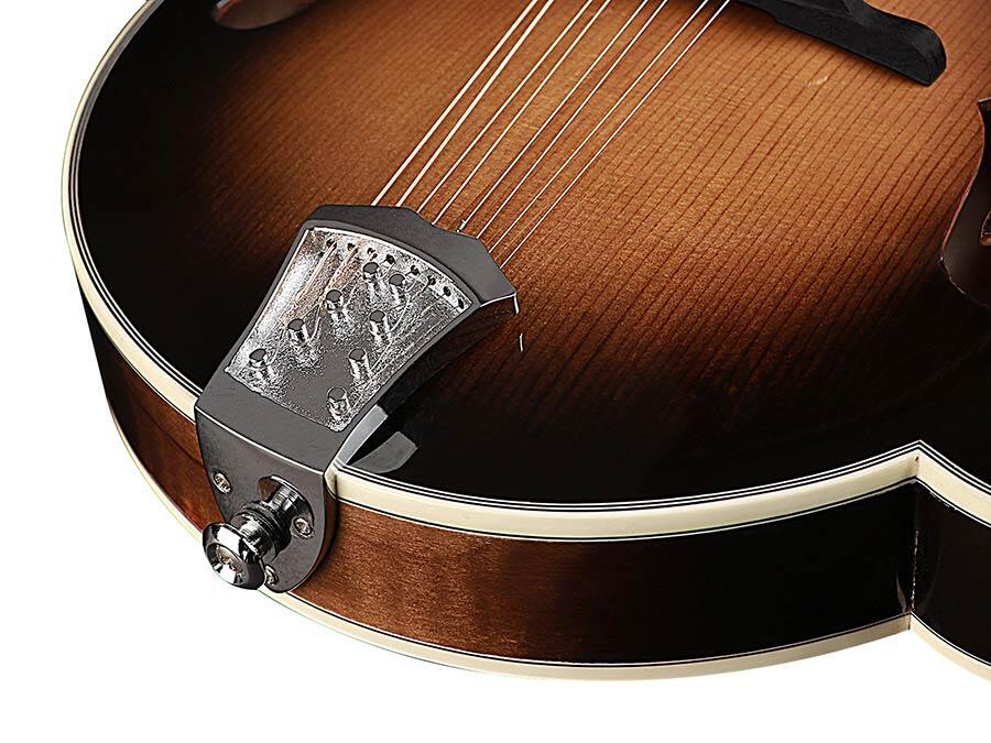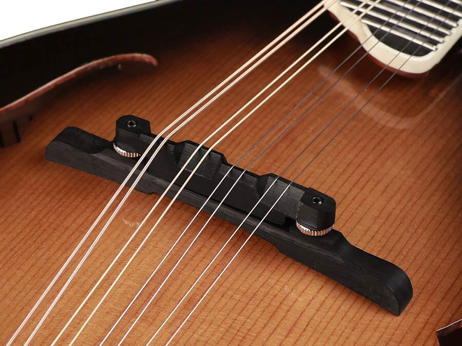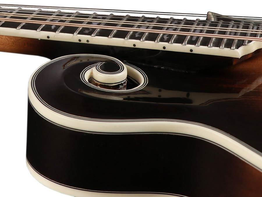 Det traditionelle look og lyd kan findes i denne helt massive F-type mandolin af gran/ahorn/ibenholt. Som alle Master Series mandoliner er denne professionelt sat op og har et godt udseende med fremragende spilbarhed.