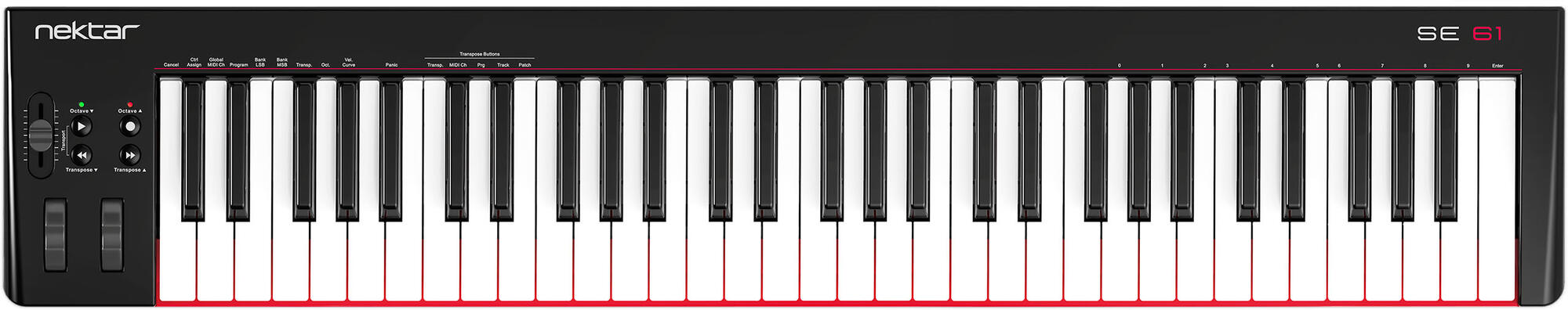 The Nektar SE61 USB MIDI controller keyboard has all the features you need to start making music with your computer. It is compatible with any MIDI music software, sports a full-size keyboard with velocity, includes all the performance controls you’d expect and even has Nektar DAW control features. Simply plug the supplied USB-cable in and go: Capture your ideas while they are fresh!