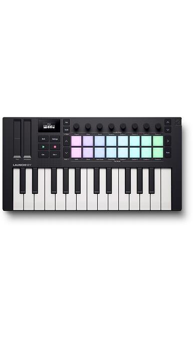 Novation - LAUNCHKEY MINI 25 MK4 - Launchkey Mini 25 er en kompakt og kraftfuld DAW-controller udstyret med en række indbyggede oprettelsesværktøjer. Hvert aspekt er designet til at forbedre dit kreative flow, fra synth-stil mini-keybed og 16 pads med polyfonisk aftertouch til kontroloverfladen, som muliggør intuitiv DAW-integration.