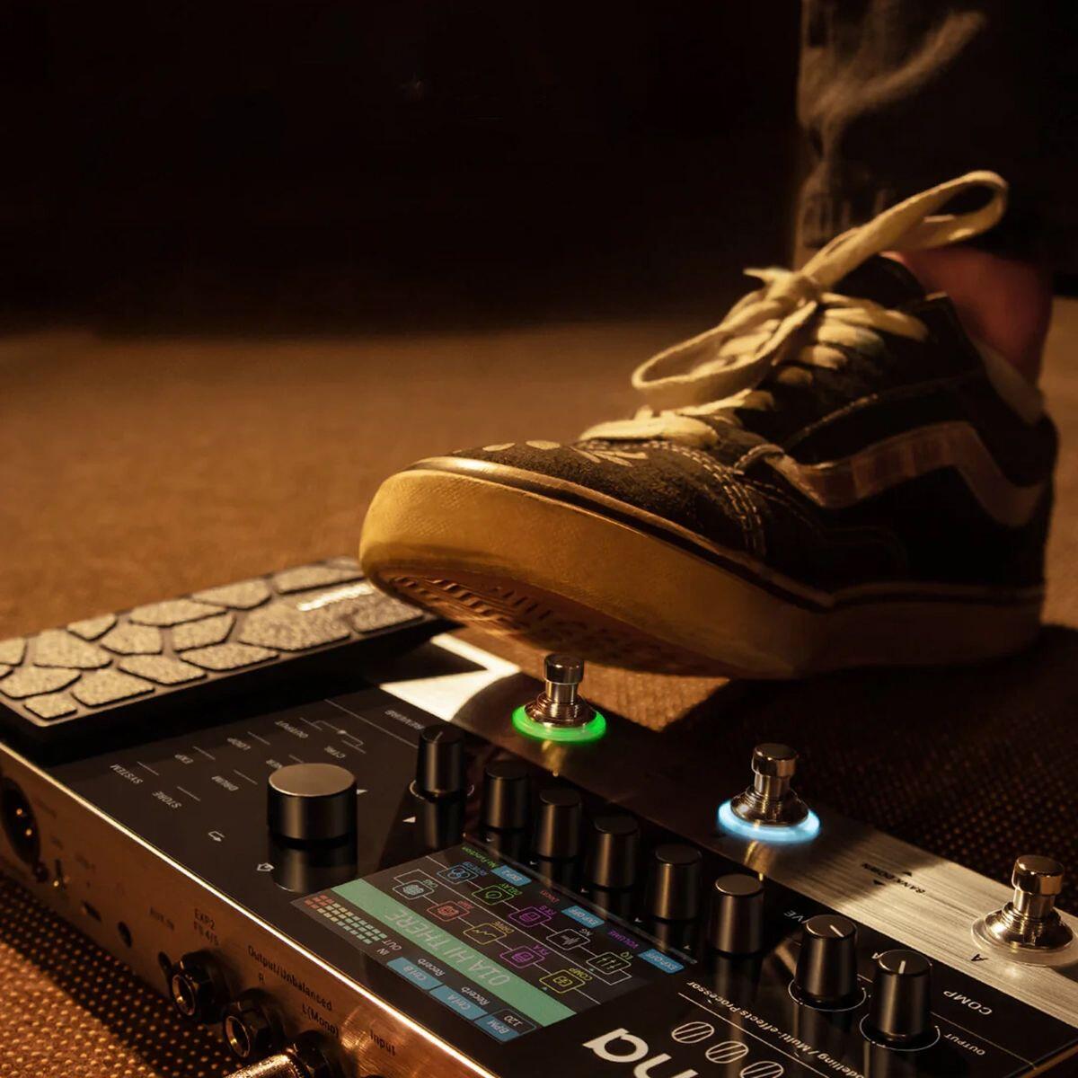 Du kan f.eks. tilslutte en ekstern controller, hvis du har brug for flere fodkontakter, når du spiller live, og du kan også tilslutte en ekstra expression pedal, hvis du har brug for det. Der er også en Midi indgang, som bruges sammen med andre Midi kompatible enheder.