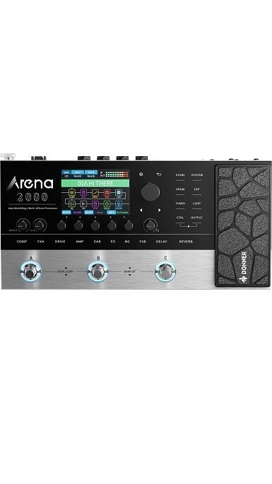 Arena 2000 er Donners bud på guitaristens nye bedste ven i form af en multieffektmaskine. Det er et kraftværk fyldt med den bedste og nyeste teknologi, og den lægger en hel verden af kompromisløs og gennemarbejdet guitarlyd for dine fødder. Altsammen i et kompakt og solidt aluminiumshus med expressionpedal og alle de tilslutningsmuligheder, som du kan få brug for, i en hvilken som helst situation – derhjemme, i øvelokalet, i studiet, i sommerhuset, på scenen eller hvor end dig og din guitar opholder sig.