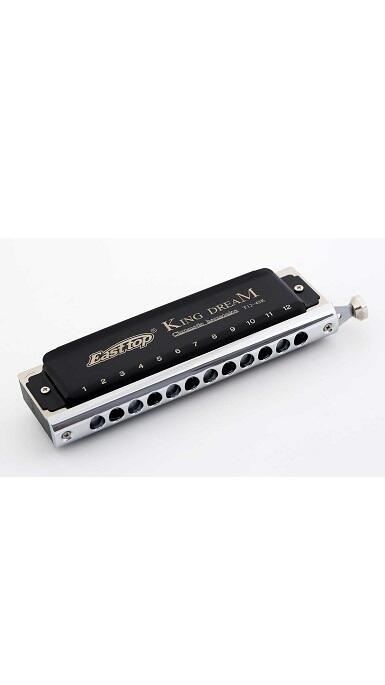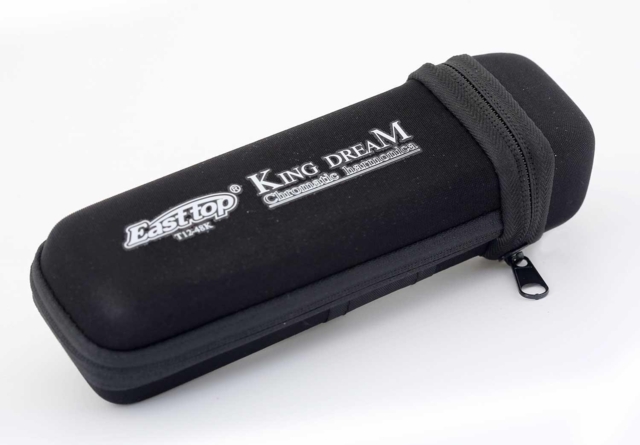Easttop King Dream Chromatic 12 hole i C - T12-48K - Lavpris-model fra Easttop. Easttop King Dream T12-48K har modtaget mange gode anmeldelser fra kendte musikere, se videoen fra Brendan Power her på siden. Easttop er en harmonikaproducent, der fremstiller instrumenter af meget høj kvalitet til en meget lav pris, og det er hvad vi alle kan lide. Det er en 12-hullers kromatisk model med en meget kraftig og smuk lyd. Dette skyldes hovedsageligt de materialer, der bruges. En massiv messingkam og præcision i instrumentets samling, hvilket afspejles i mundharmonikaens store lufttæthed. Så snart du får denne Easttop T12-48K King Dream harmonika i hånden, føler du straks kvaliteten og vægten fra kammen. Ved at bruge blæse- og sugeteknikken får du 48 forskellige toner i denne model. 2 års garant. 100% returret. Billig og hurtig levering. En sikker og god handel. Køb i dag, og vi sender i morgen.