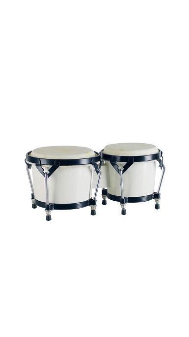 - bongo, hardwood, 6,85"+7,95", rawhide skins, black hardware, White