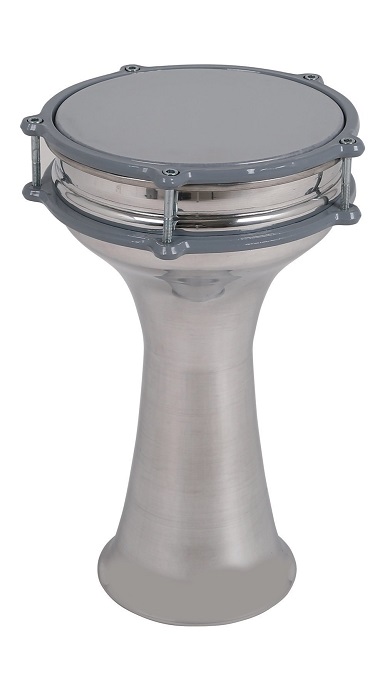 Tyrkisk Djembe i aluminium - kan stemmes med tilhørende stemmenøgle. Højde 35,5 cm - ø5,9"