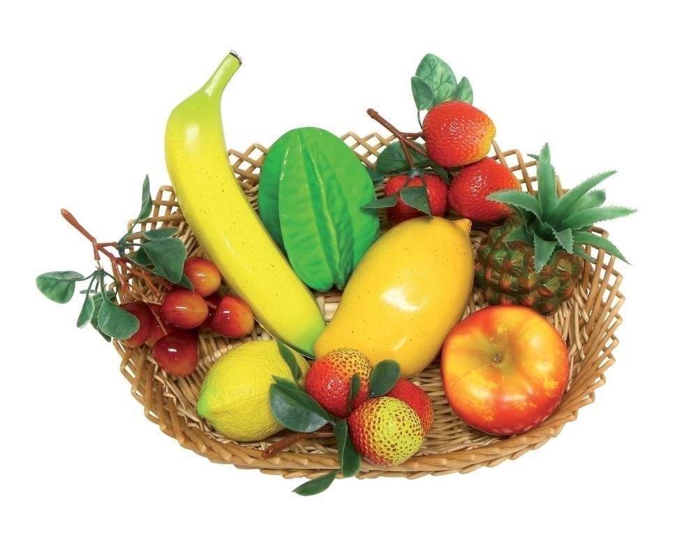 GEWA Frugt Shaker Kurv - Lækker delikat frugt-kurv med 9 shakers formet som eksotiske frugter. Ikke spiselige! - Inkl. kurv
