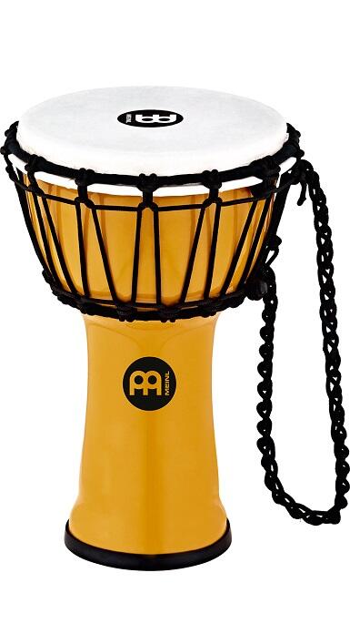 Meinl Percussion JRD-Y 7" Jr. Djembe, Yellow - Lille kompakt reb djembe, ideel til rejser. Letvægtsstel af ABS, med læder, der kan tåle udendørs leg. Meinl Jr. Djemben er det perfekte "grab-and-go" instrument til enhver lejlighed.