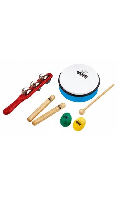 NINO Percussion - NINOSET3 - 5 stk. - lavet af slidstærkt plastik og træ, og de forskellige percussion instrumenter giver en række forskellige lydkarakterer. 5 Stk. - Du får:
