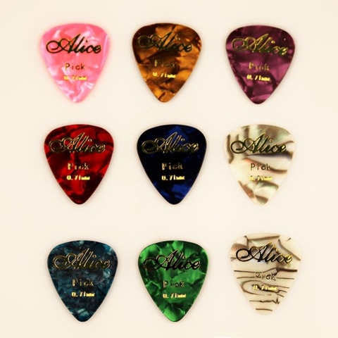 Alice - Picks 0.71 mm - 1 stk. - Meget flotte Alice plektre i tykkelsen: 0.71mm - celluloid picks. Kom gerne ind i Guitarhuset og bland plektre, alt efter hvilke størrelser / tykkelser du ønsker dig.