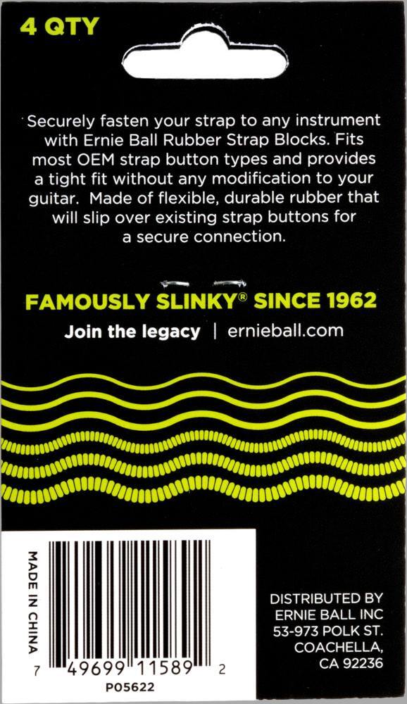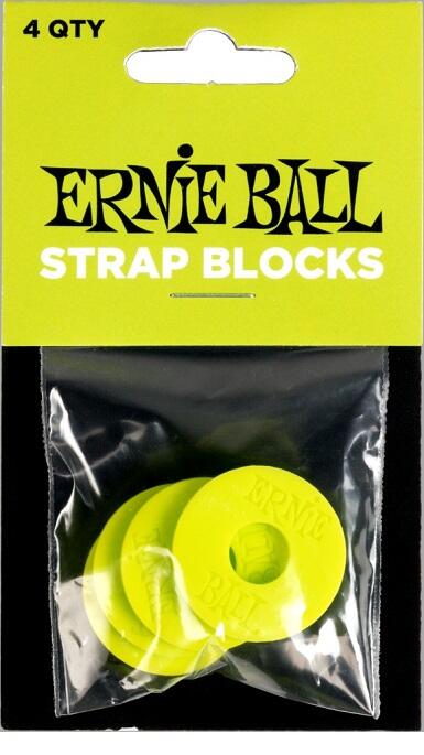 Ernie Ball EB-5622 Strap Blocks 4 stk. Grøn - Undgå at din rem hopper af guitaren med de simple, men geniale Strap Blocks fra Ernie Ball. De er lavet af et fleksibelt og holdbart gummimateriale og passer til stort set alle strap-holdere. Der er 4 stk. i hver pose og de fås i forskellige farver.