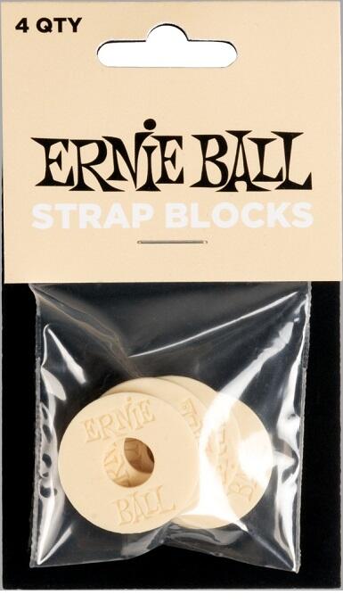 Ernie Ball EB-5624 Strap Blocks 4 stk. Creme - Undgå at din rem hopper af guitaren med de simple, men geniale Strap Blocks fra Ernie Ball. De er lavet af et fleksibelt og holdbart gummimateriale og passer til stort set alle strap-holdere. Der er 4 stk. i hver pose og de fås i forskellige farver.