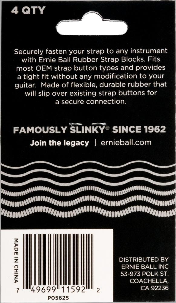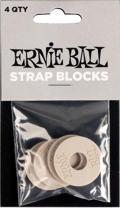 Ernie Ball EB-5625 Strap Blocks 4 stk. Grå - Undgå at din rem hopper af guitaren med de simple, men geniale Strap Blocks fra Ernie Ball. De er lavet af et fleksibelt og holdbart gummimateriale og passer til stort set alle strap-holdere. Der er 4 stk. i hver pose og de fås i forskellige farver.