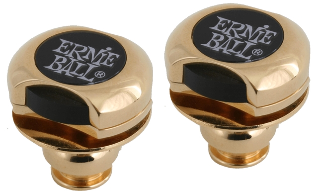 Ernie Ball - Super Lock EB-4602 Gold - Robust strap lock fra Ernie Ball i guld og med EB logo på. Nemt at tage af og på, på guitaren.