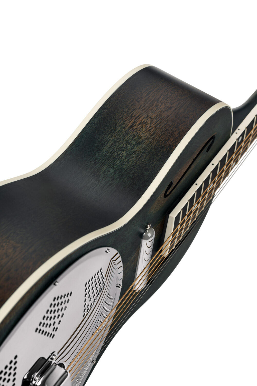 • Mahogany back & sides, distressed satin Denim finish.