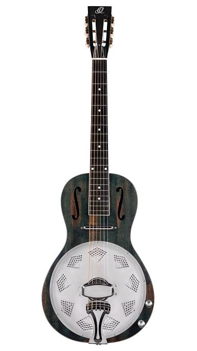 Ortega - RRG30E-DD - Americana Series, Denim - Parlor resonator guitar. Vores nye Americana-serie blander det traditionelle look og følelse med modernitet, ligesom dets musikalske rødder. En karakteristisk kegleresonator er integreret, hvilket giver dem deres karakteristiske overtonerige lyd. Lydstyrke- og tonekontroller er tilgængelige på de magnetiske læbestift pickup-udstyrede guitarer.