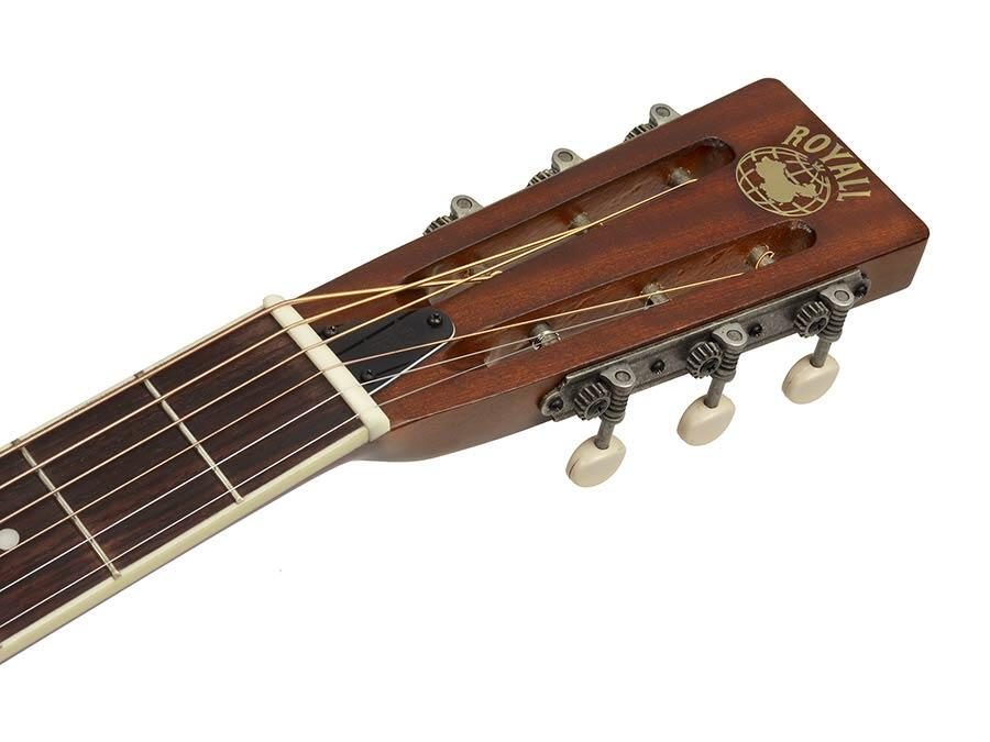 Alle guitarer er sat op i Royall-værkstedet af luthiers, der faktisk også spiller på instrumenterne. Royall Resonator guitarer har en lang historie med at lave deres egne resonatorkegler. En unik godbid, der lader Royall-resonatorer skille sig ud fra mængden. Inkl. soft case