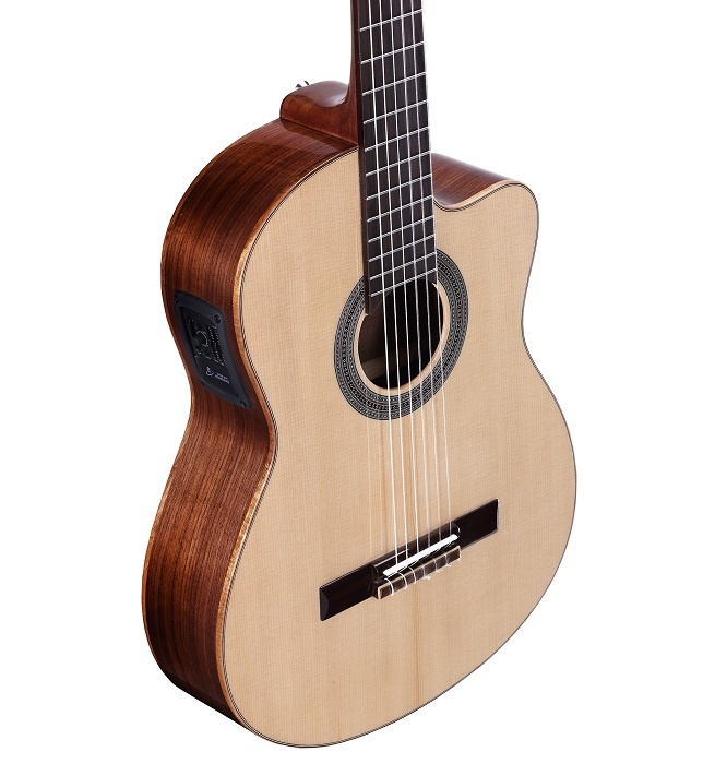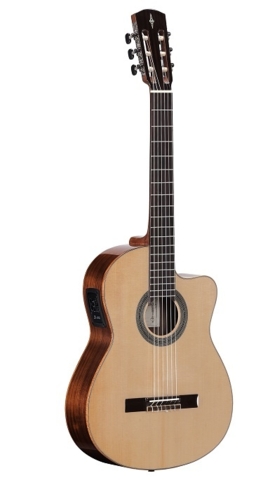 Alvarez Cádiz Spansk Koncert Halvakustisk Guitar CC7CE - Samme lækre guitar som Alvarez CC7 - specielt designet til koncertsituationer. Front i Sitka gran, bagside og sider i mørk valnøddetræ, hals i mahogni og gribebræt i rosentræ, bro og sadel i ægte ben, D’Addario Pro Arte EXP46, LR Baggs StagePro EQ and Element Pick Upper.