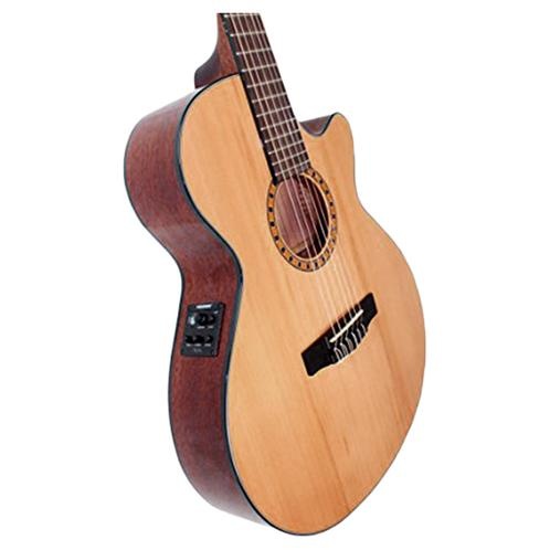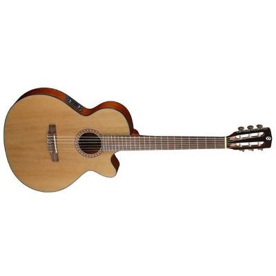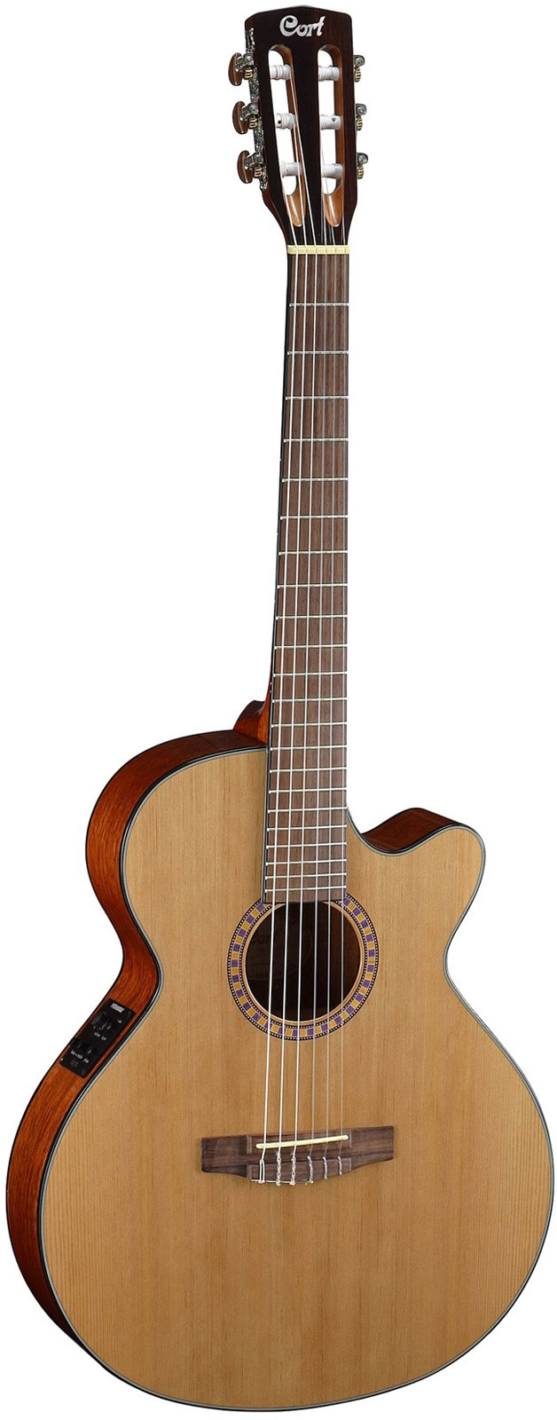 Cort CEC5-NAT er en halvakustisk spansk guitar med Massiv dæk af cedertræ , Mahogni hals , sider og bagsid samt Fishman Sonicore pickup og Isys Plus preamp