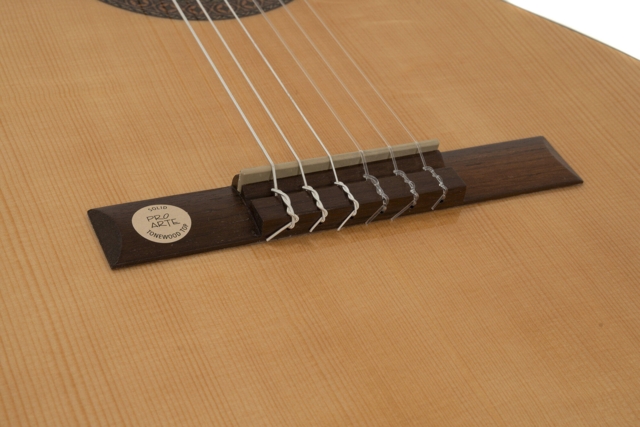 - Solid, 2-part Spruce top, genuine wood mosaic soundhole rosette