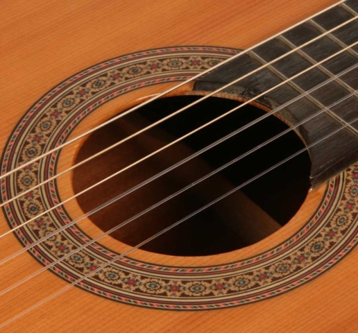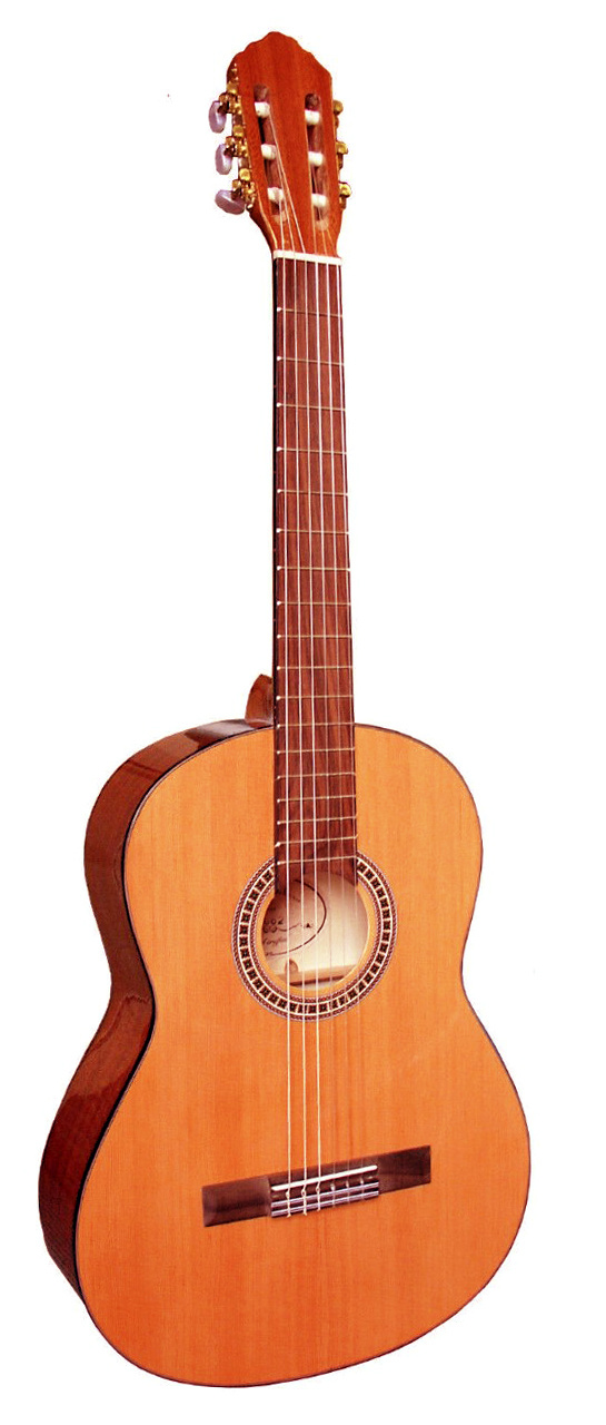 Jose Ribera HG-62 - Høj poleret finish og med D´Addario-strenge - Hals bredde: 50 mm. Skala længde: 650 mm. Guld-belagt mekanik. Top: massiv gran finér, lys. Bund og sider: mahogni. Højglanspoleret. D' Addario-strenge.